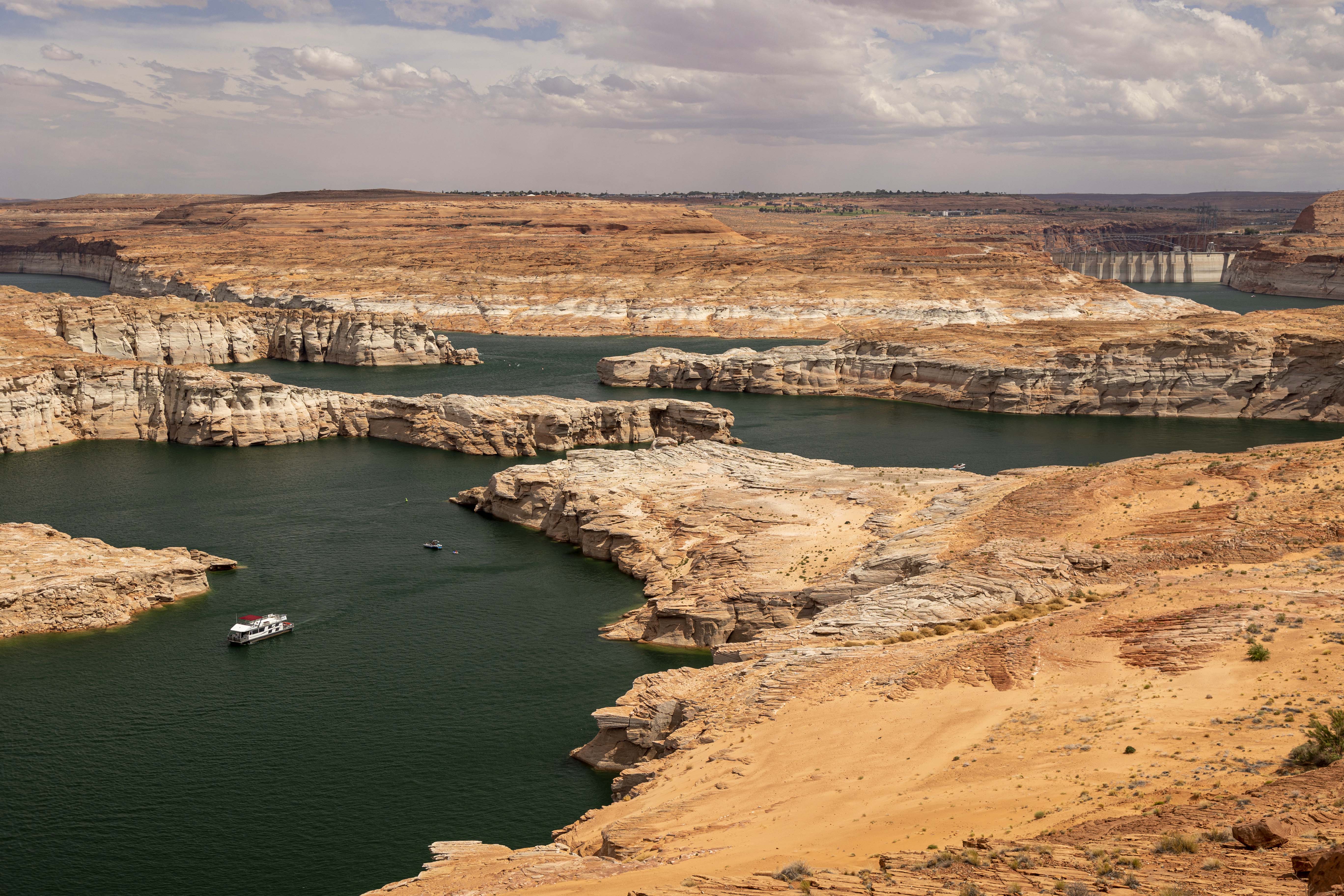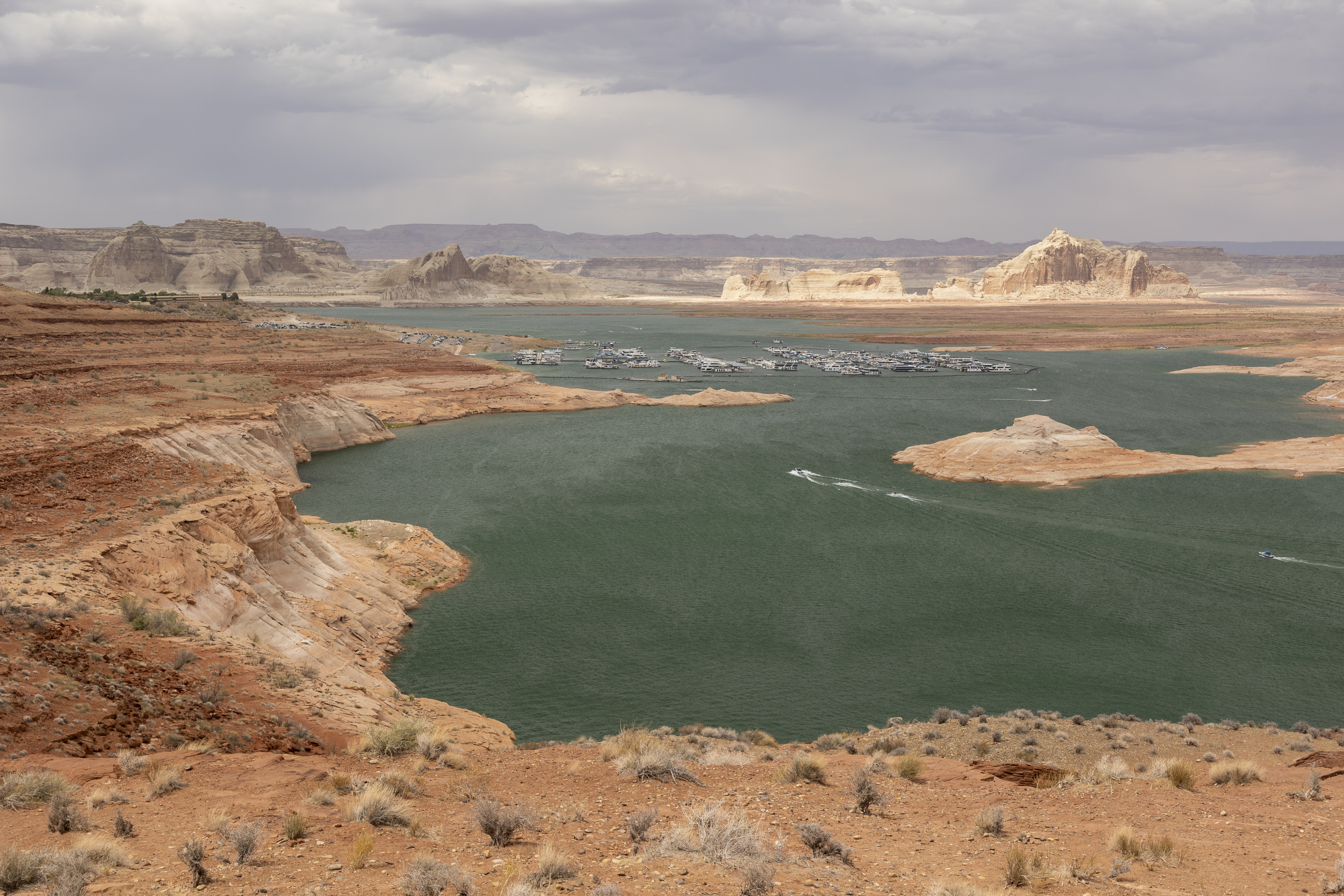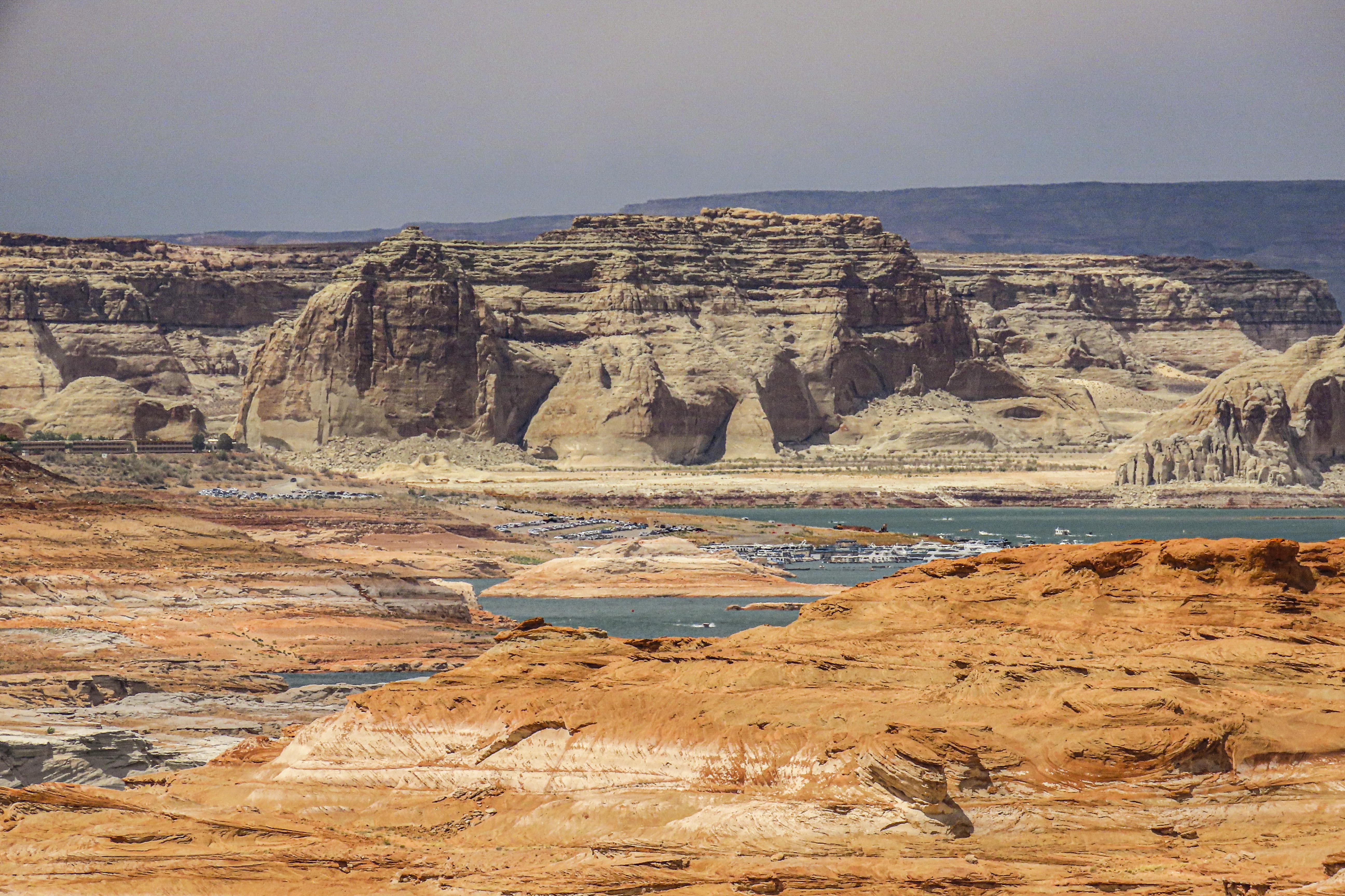 On the way to Page, where we will be staying so we can go to Antelope Canyon the following day we stopped in at Horseshoe Bend which is again quite a stunning piece of nature whereby the Colorado River bends around a piece of land which it has carved out over 5-6 million years. We also had a drive to Glen Canyon Dam & Lake Powell where they dammed the Colorado River to build a hydroelectric power station, taking 10 years to construct, opening in 1966. You can see how the water level has dropped over the years. They need rain!