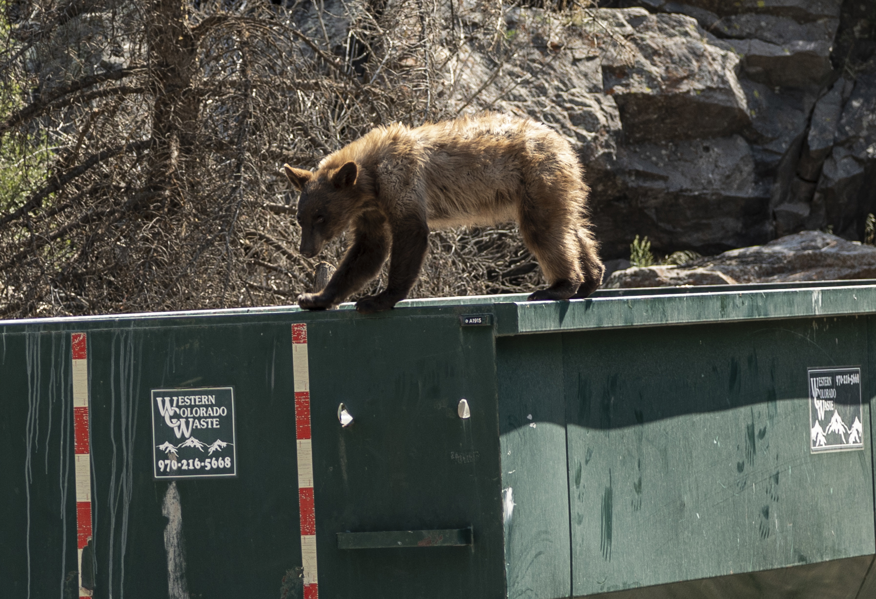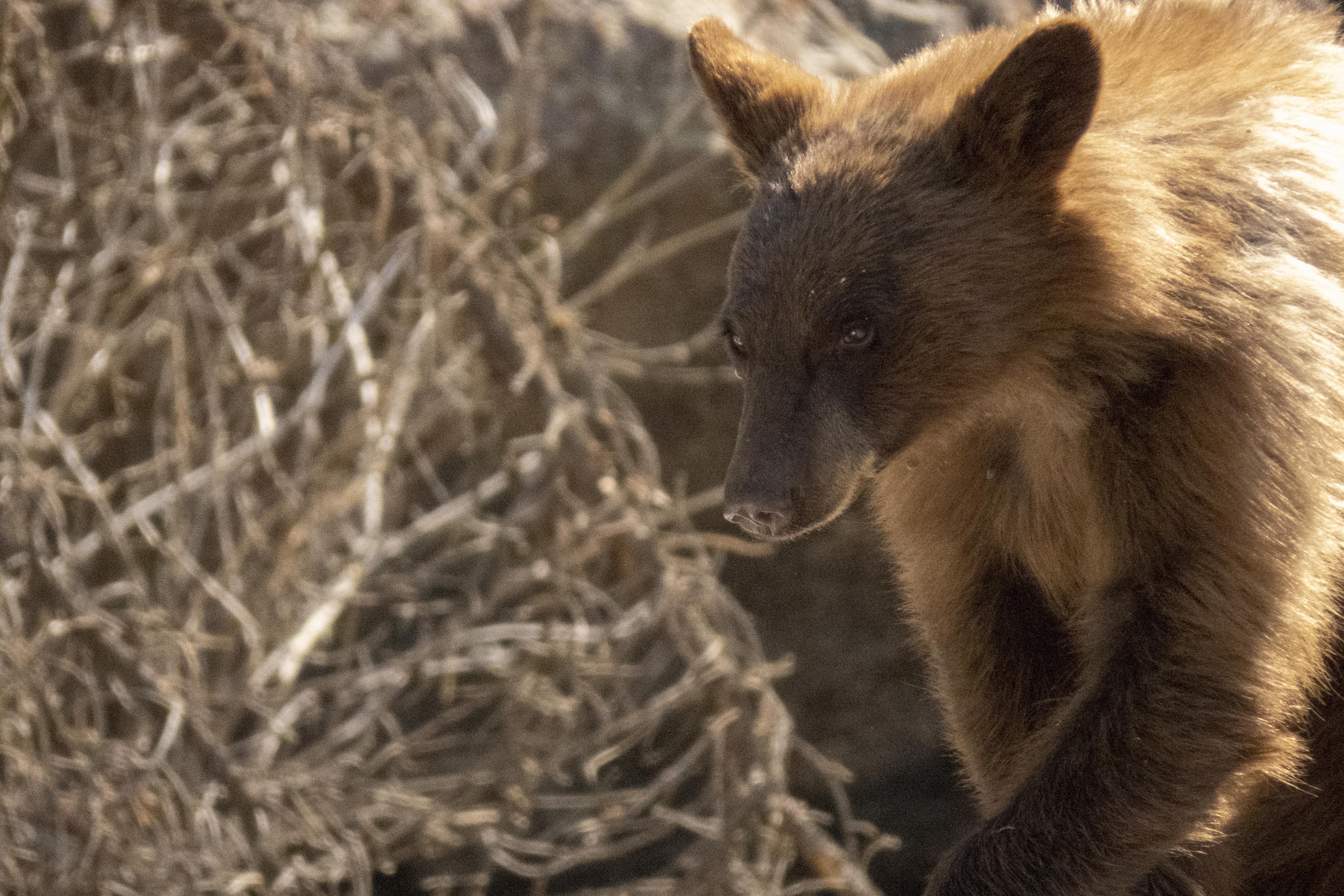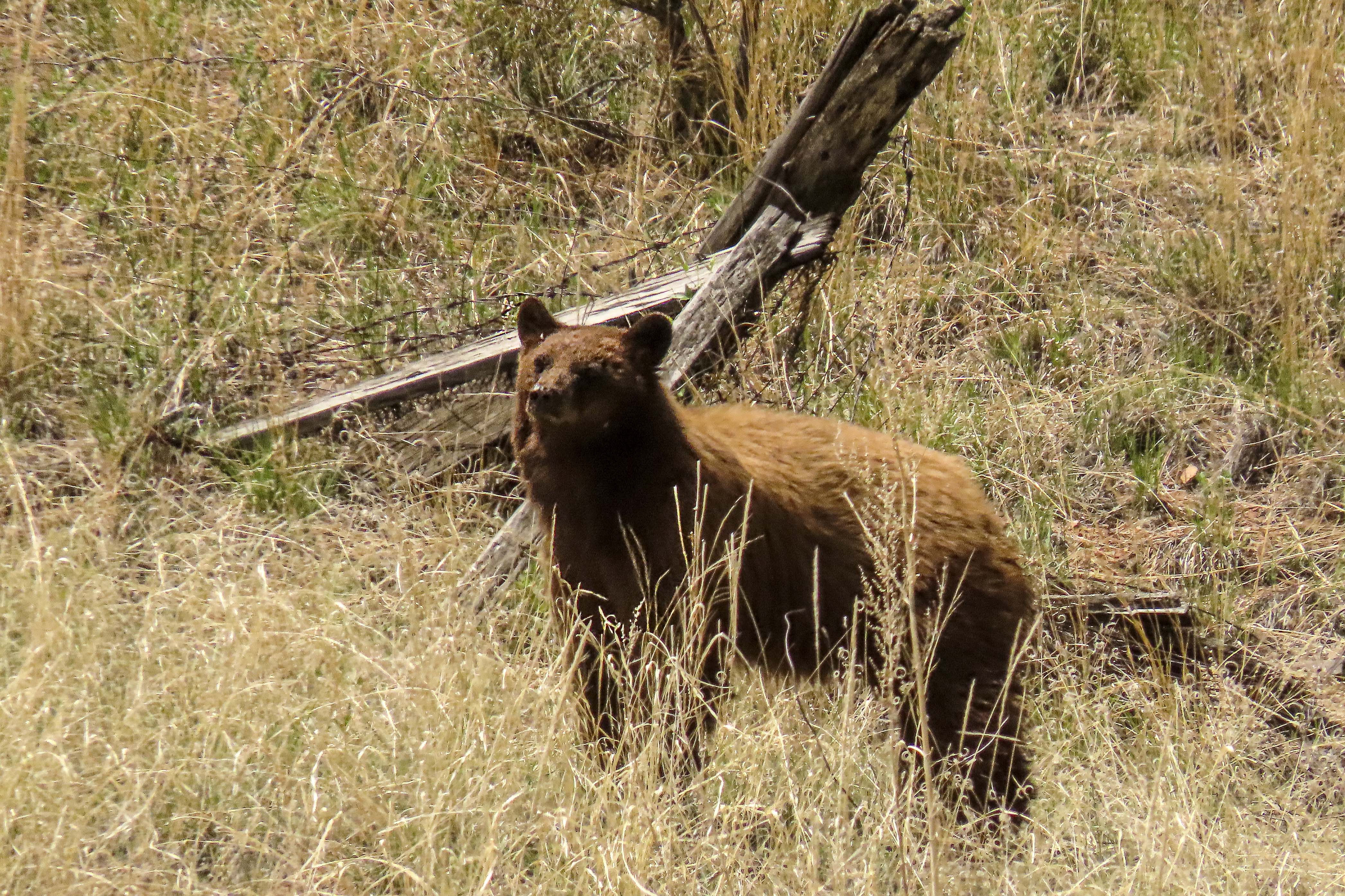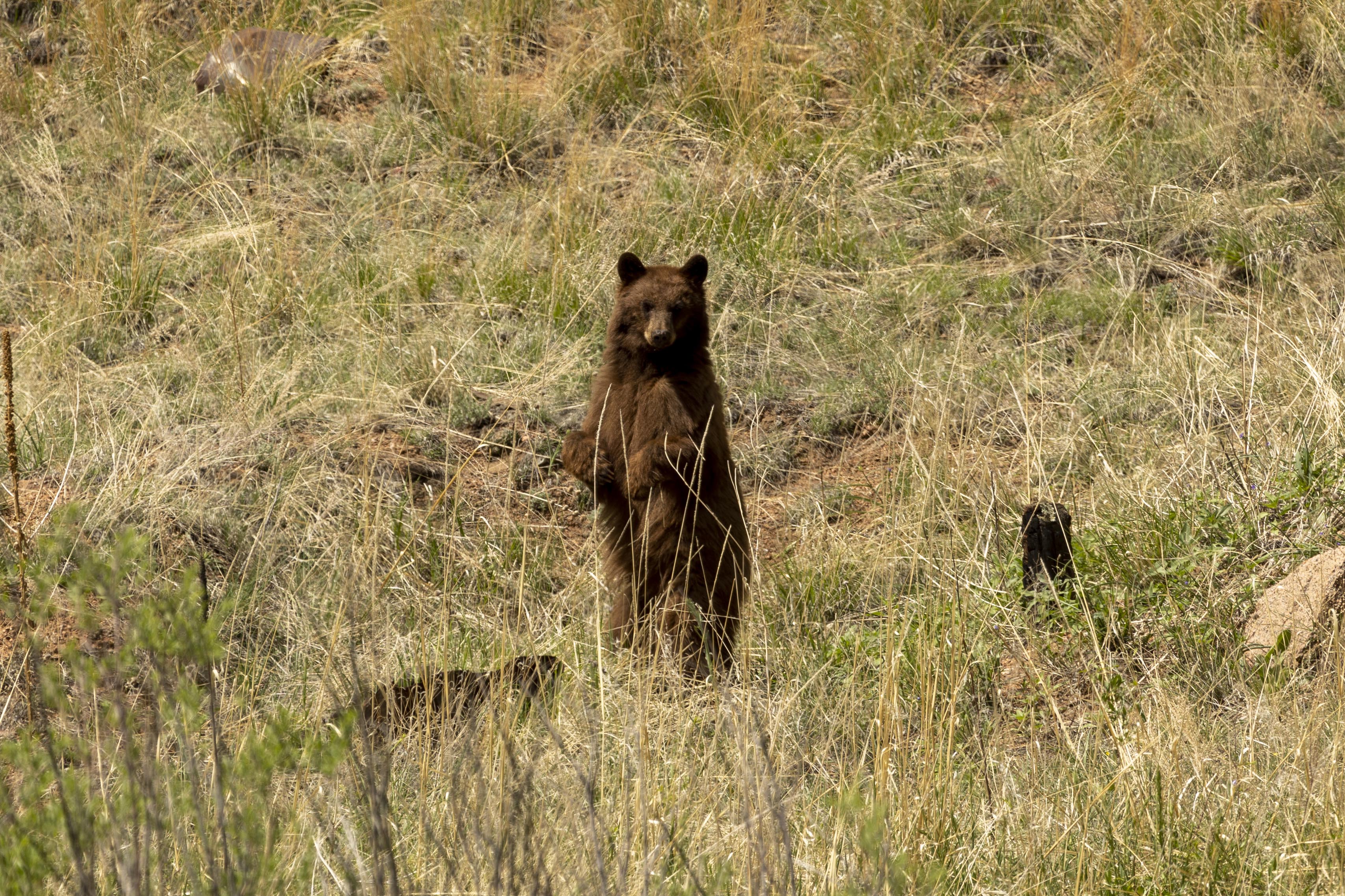 The following day we had a fairly short drive to Colorado Springs so we naturally took the scenic route. This was a foretunate decision as we spotted a cinnamon black bear in scrub off the side of the road. We stopped & had a look then turned back for a better look & he in turn had a good look at us!