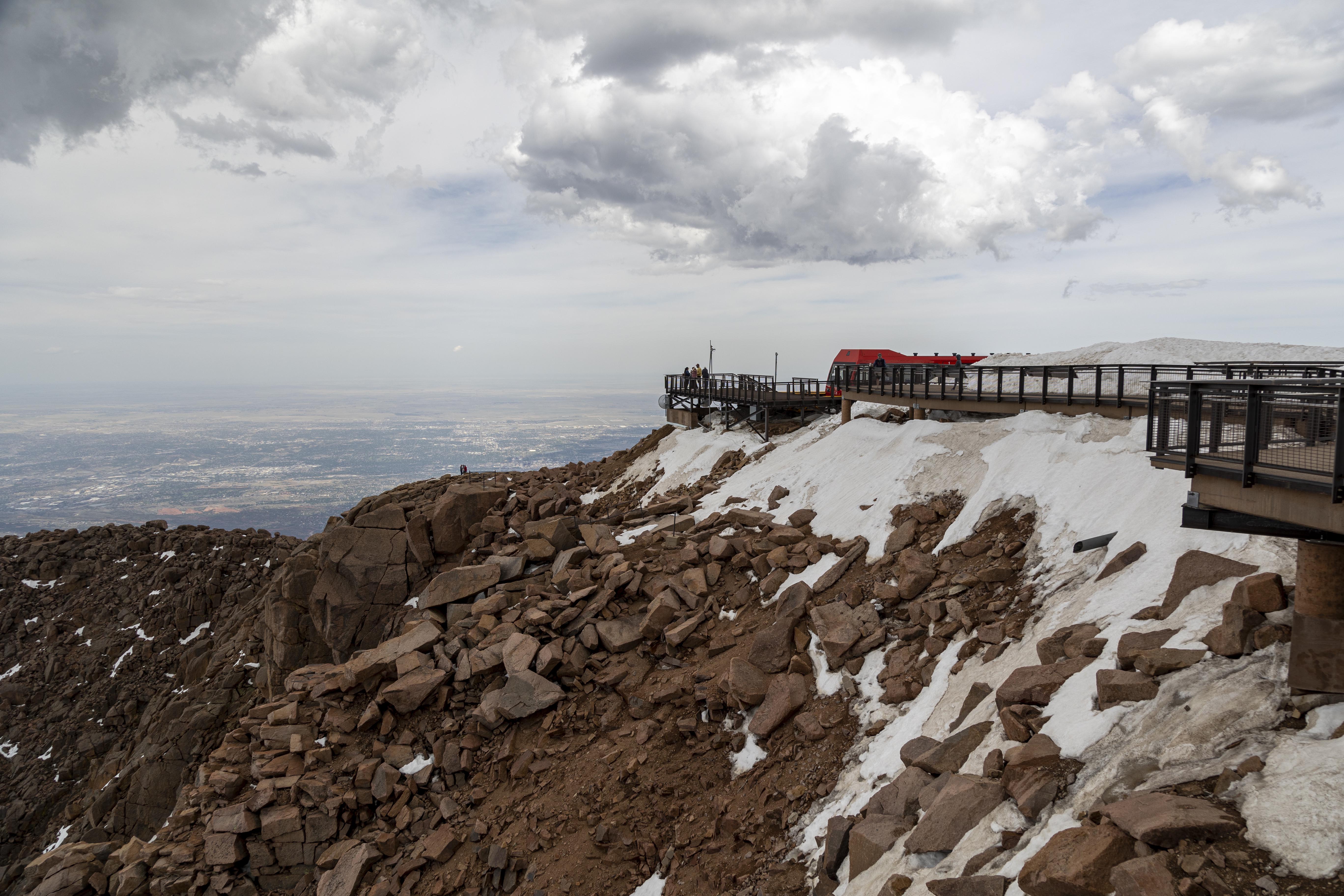We had booked in to the Pikes Peak cog railway in the afternoon. After trying to get something to eat at Manitou Springs, where traffic & people were in over abundance. We had to settle for a packet of chips & an ice cream at Pikes Peak railway station. We had obviously heard of altitude sickness before but this is the first time we had experienced it. Its a combination of giddiness and nausea. Couldn’t wait for the trip back down!