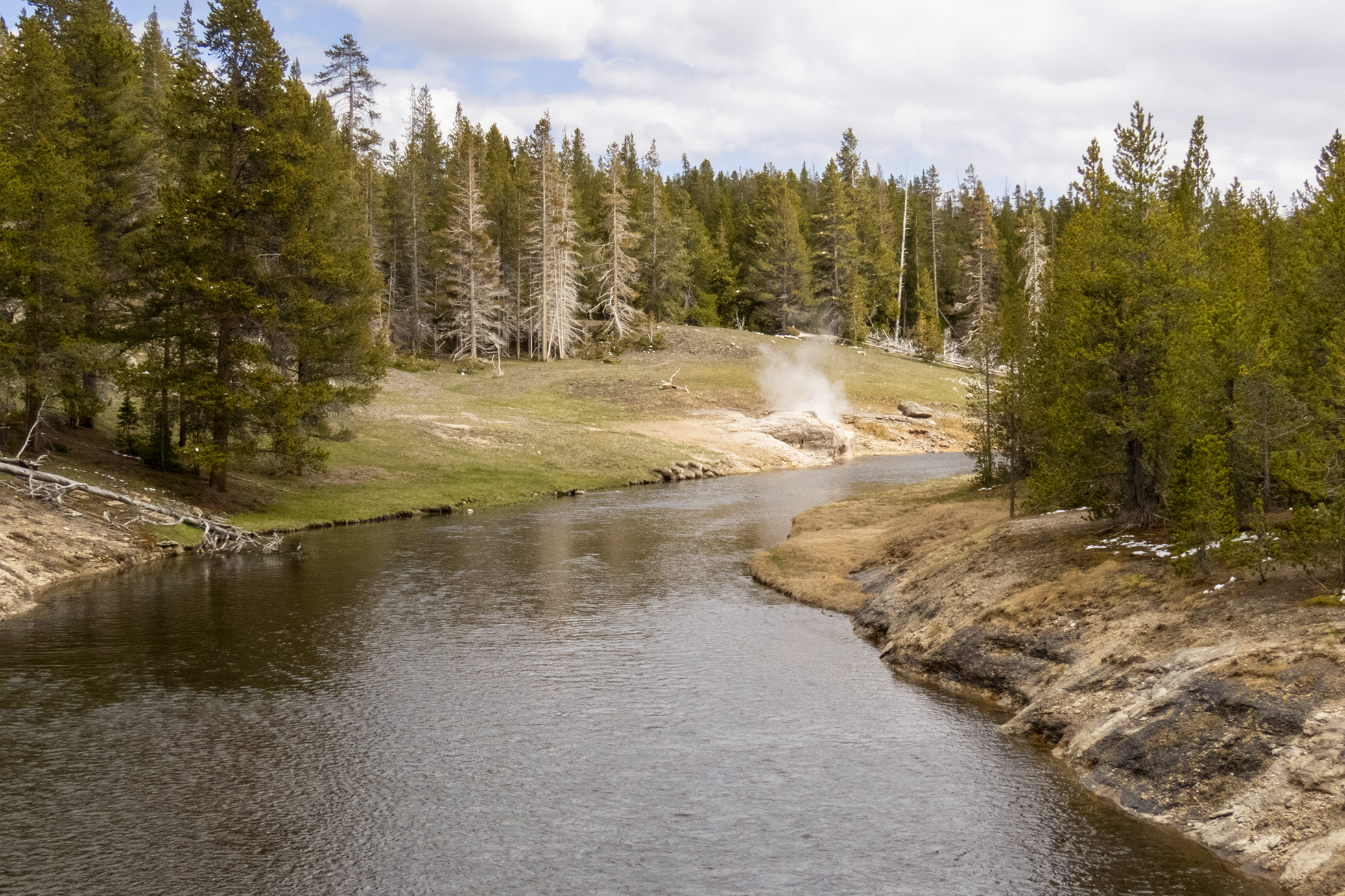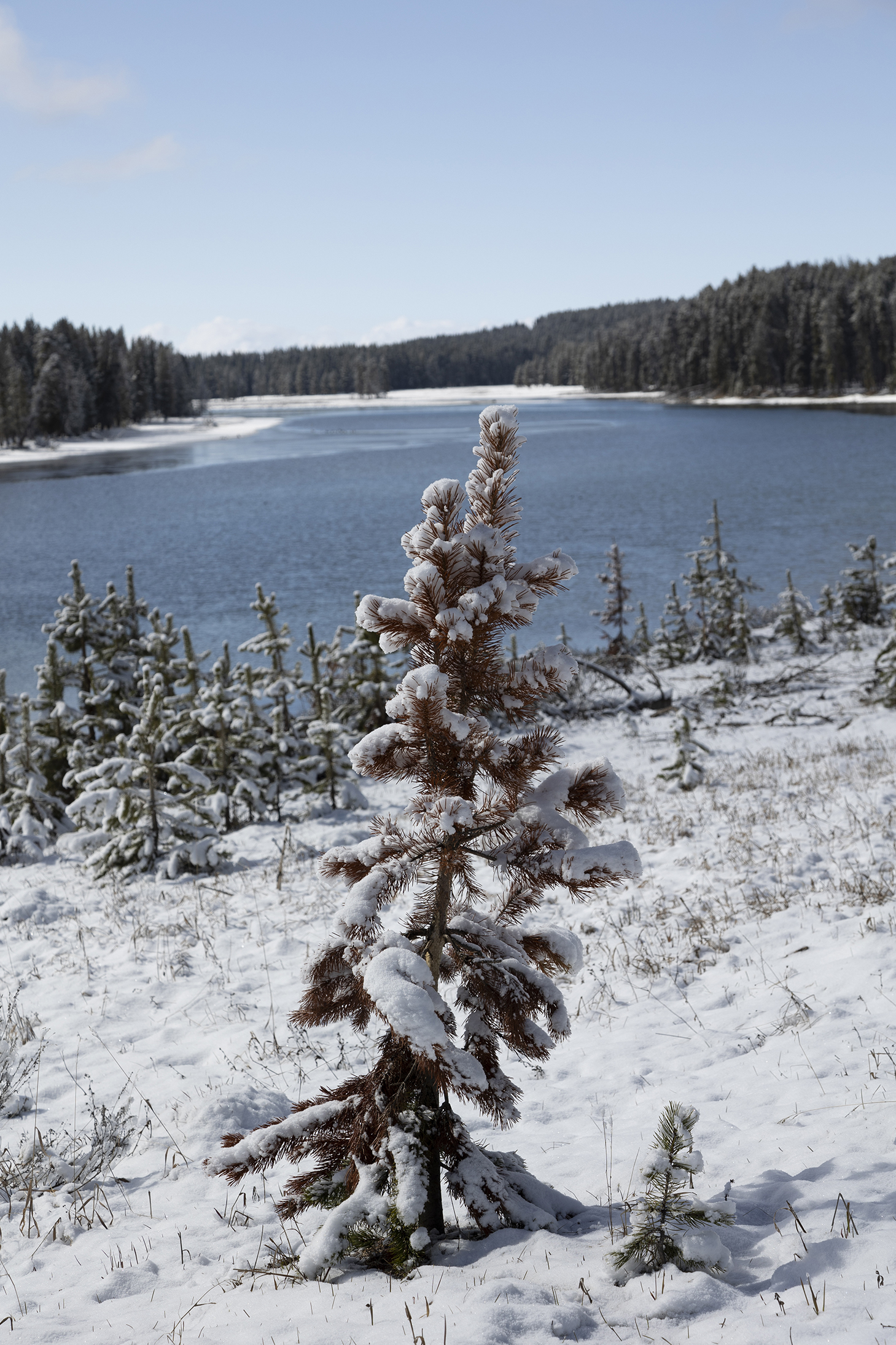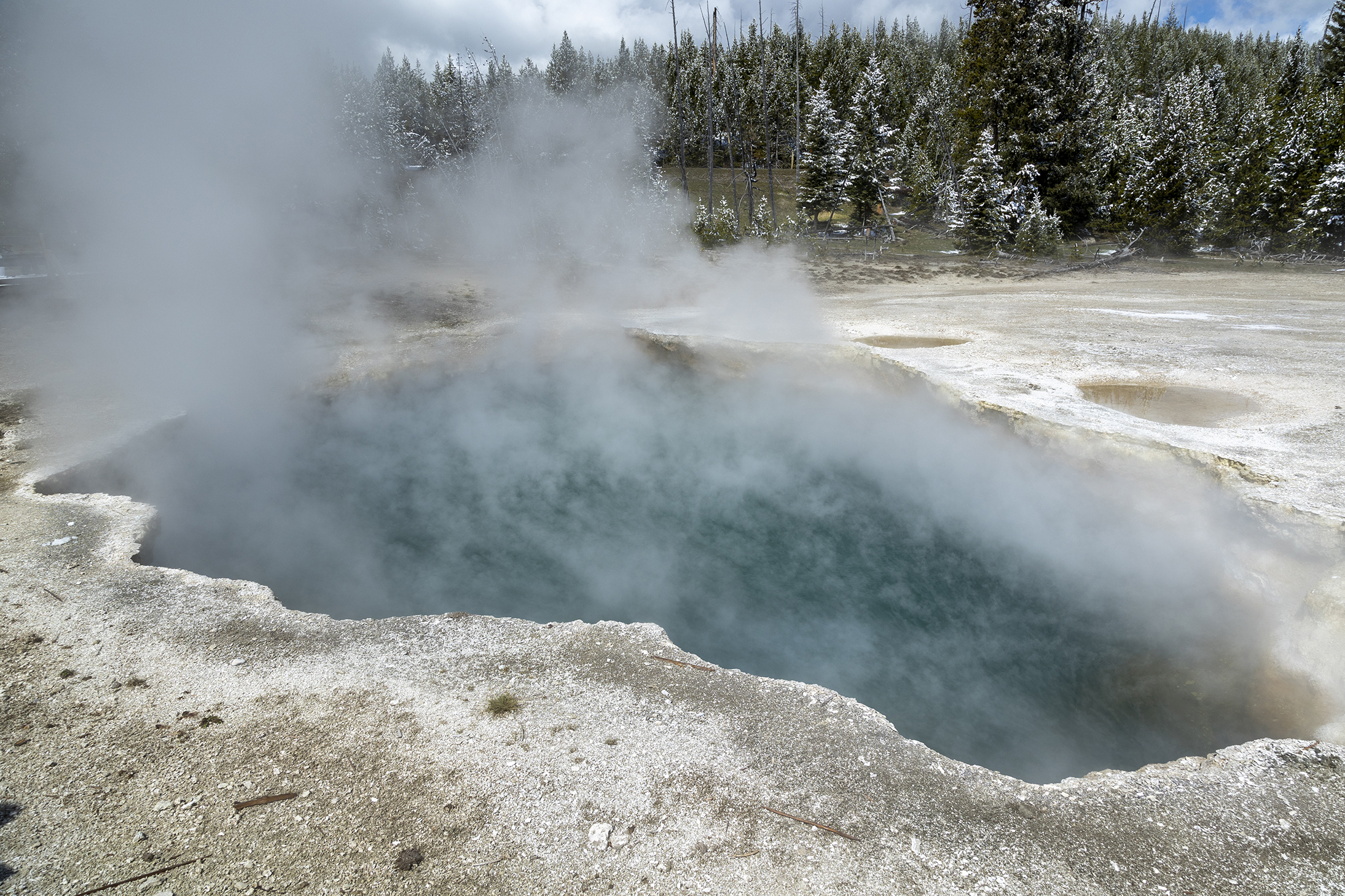Took a drive to West Thumb Geyser Basin via Fishing Village alongside Yellowstone Lake. After the snow the scenery was beautiful as only snow can make it so.