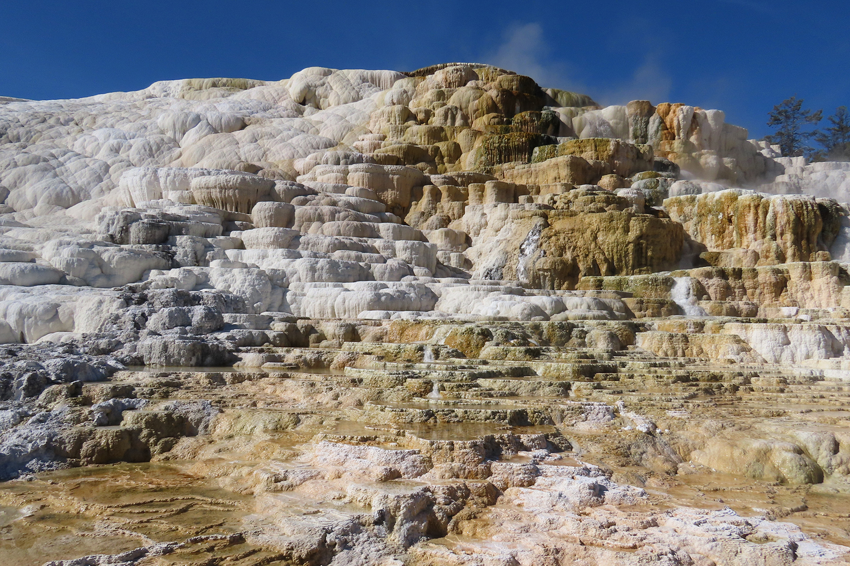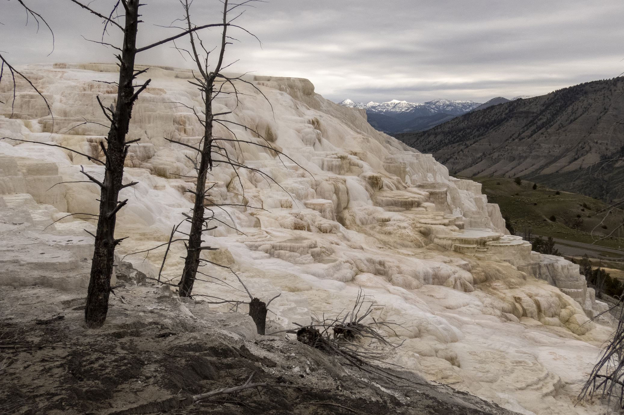 Headed off early next day to Mammoth Hot Springs where we went to the upper terraces. Not only are they truly remarkable but the view to the mountains in Montana are spectacular. Whilst there we saw a juvenile elk and a Bull Snake sometimes referred to as a Gopher Snake.
