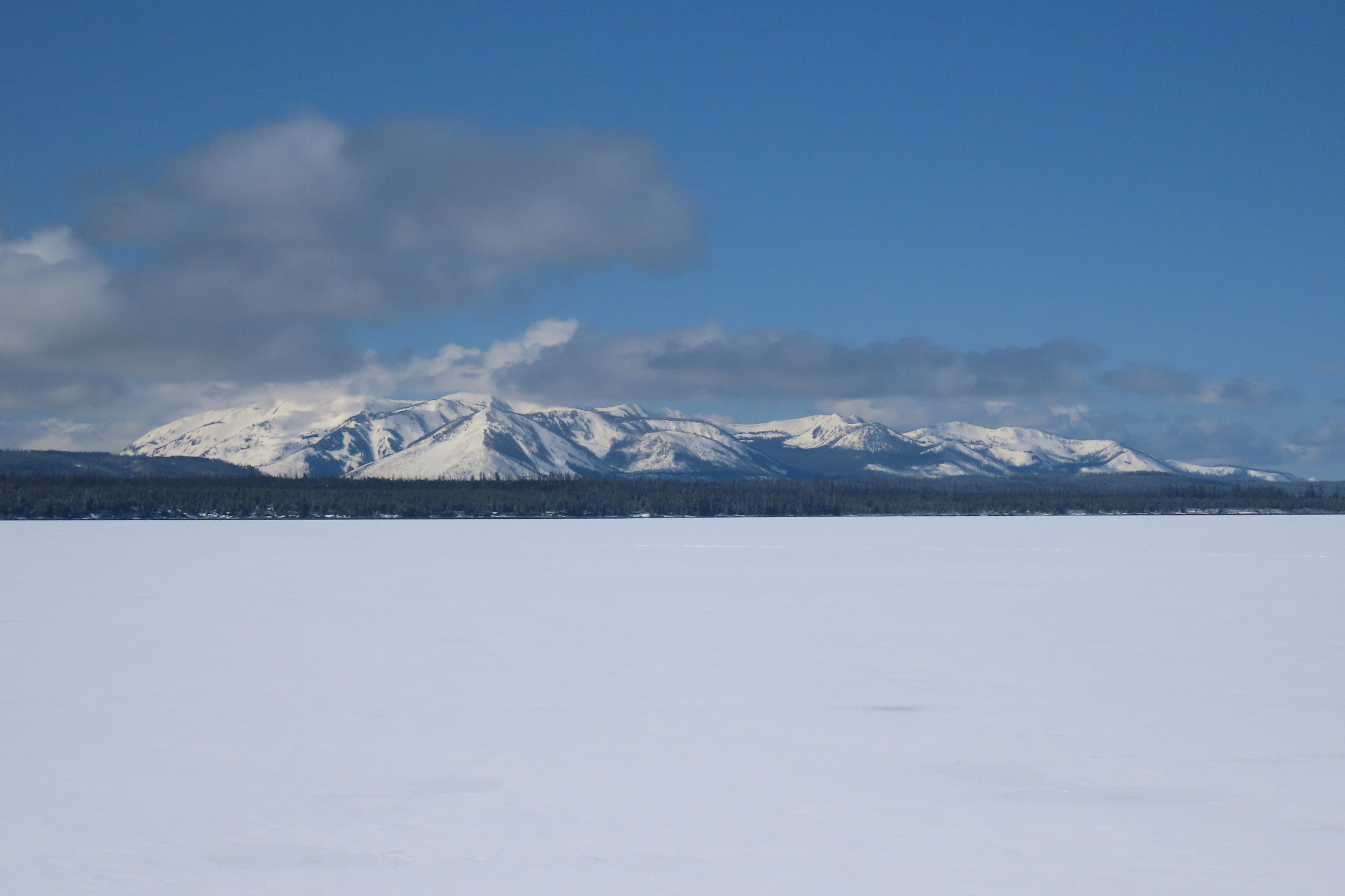 Had a very ordinary lunch at Yellowstone Lake Lodge but had great views of the mostly frozen lake with views to the Absacola Mountains in the background.